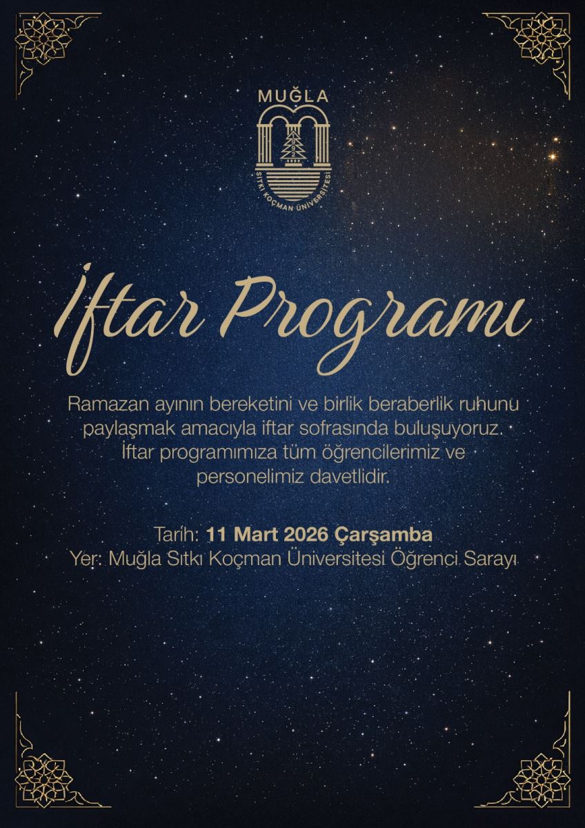 İftar Programı Son Güncelleme : 03.03.2026 11:24:42 Yayınlayan : basin.mu.edu.tr Tarih : 03.03.2026 08:30 Okunma Sayısı : 394