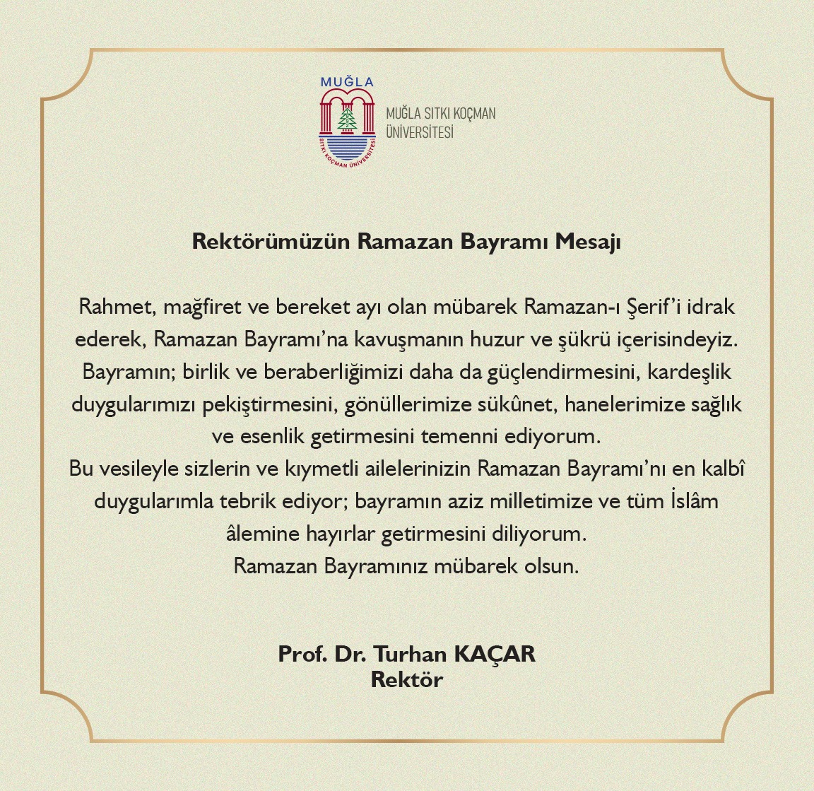 Rektörümüzün Ramazan Bayramı Mesajı Son Güncelleme : 18.03.2026 13:47:19 Yayınlayan : basin.mu.edu.tr Tarih : 18.03.2026 08:30 Okunma Sayısı : 33