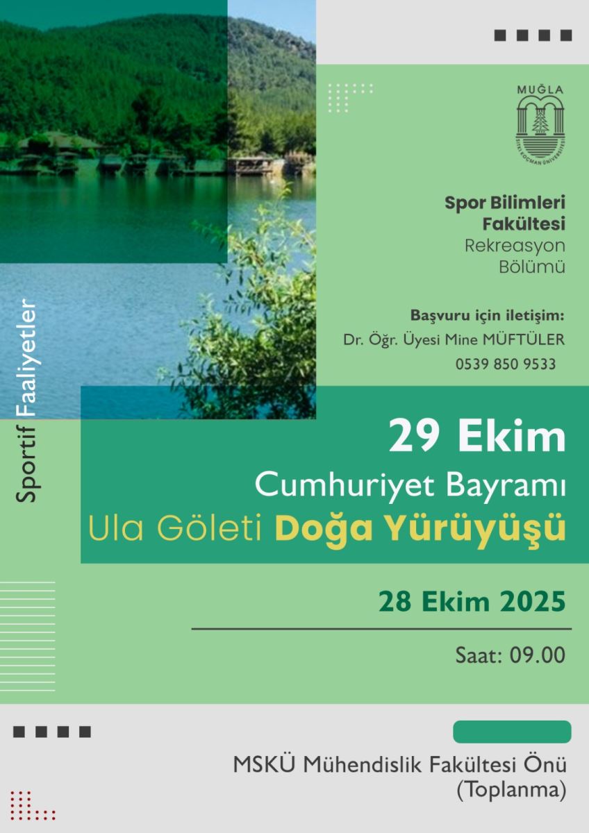 29 Ekim Cumhuriyet Bayramı Ula Göleti Doğa Yürüyüşü Son Güncelleme : 20.10.2025 13:27:40 Basın, Halkla İlişkiler ve Protokol Müdürlüğü Tarih : 17.10.2025 08:30